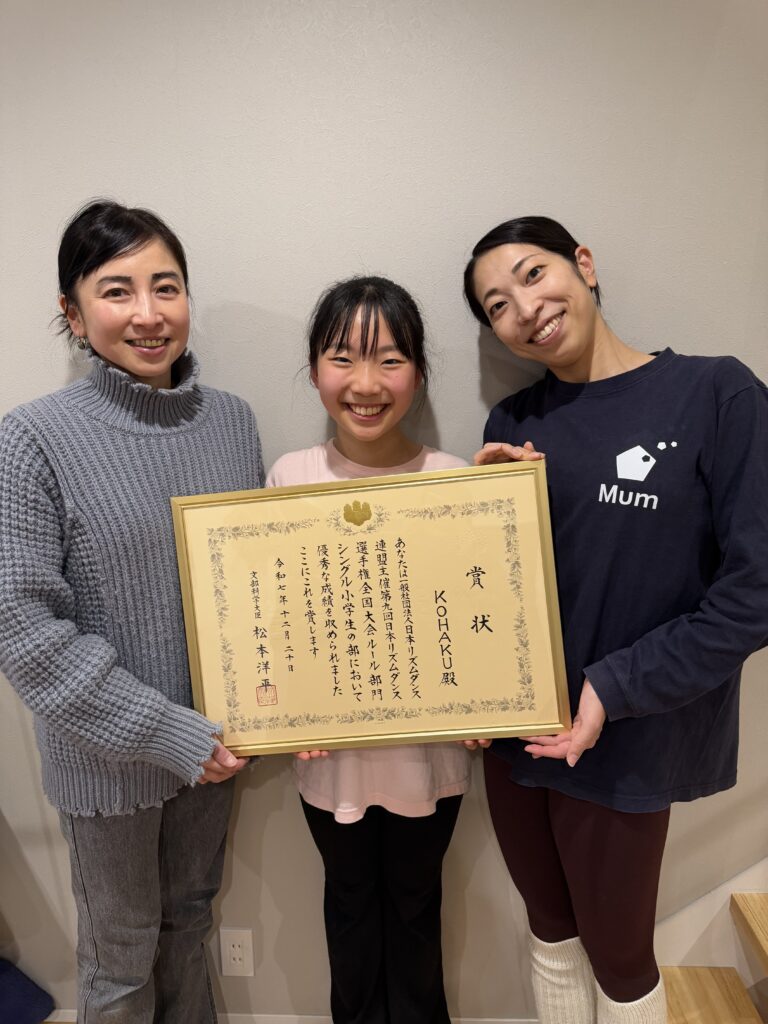 今回、日本リズムダンス選手権で文部科学大臣賞をいただくことができ、とても嬉しく思います。