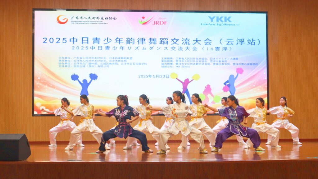 2001年から広東省政府の協力でエアロ・リズムダンスを通じての日中国際交流大会がスタートし、今回雲浮市で広東省21市全市の開催となる記念の交流大会でした。