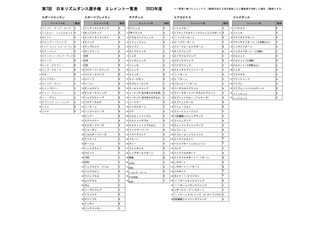 第7回 日本リズムダンス選手権 エレメント動画アップのお知らせ 2023.06.30 第7回 日本リズムダンス選手権 エレメント動画をアップいたしましたので、エレメント一覧表と合わせてご確認ください。(全国大会・地区大会のページにも掲載しております。) 第7回 日本リズムダンス選手権 エレメント一覧 2023年度0703-2ダウンロード エレメント動画 前の記事へ 一覧へもどる 次の記事へ